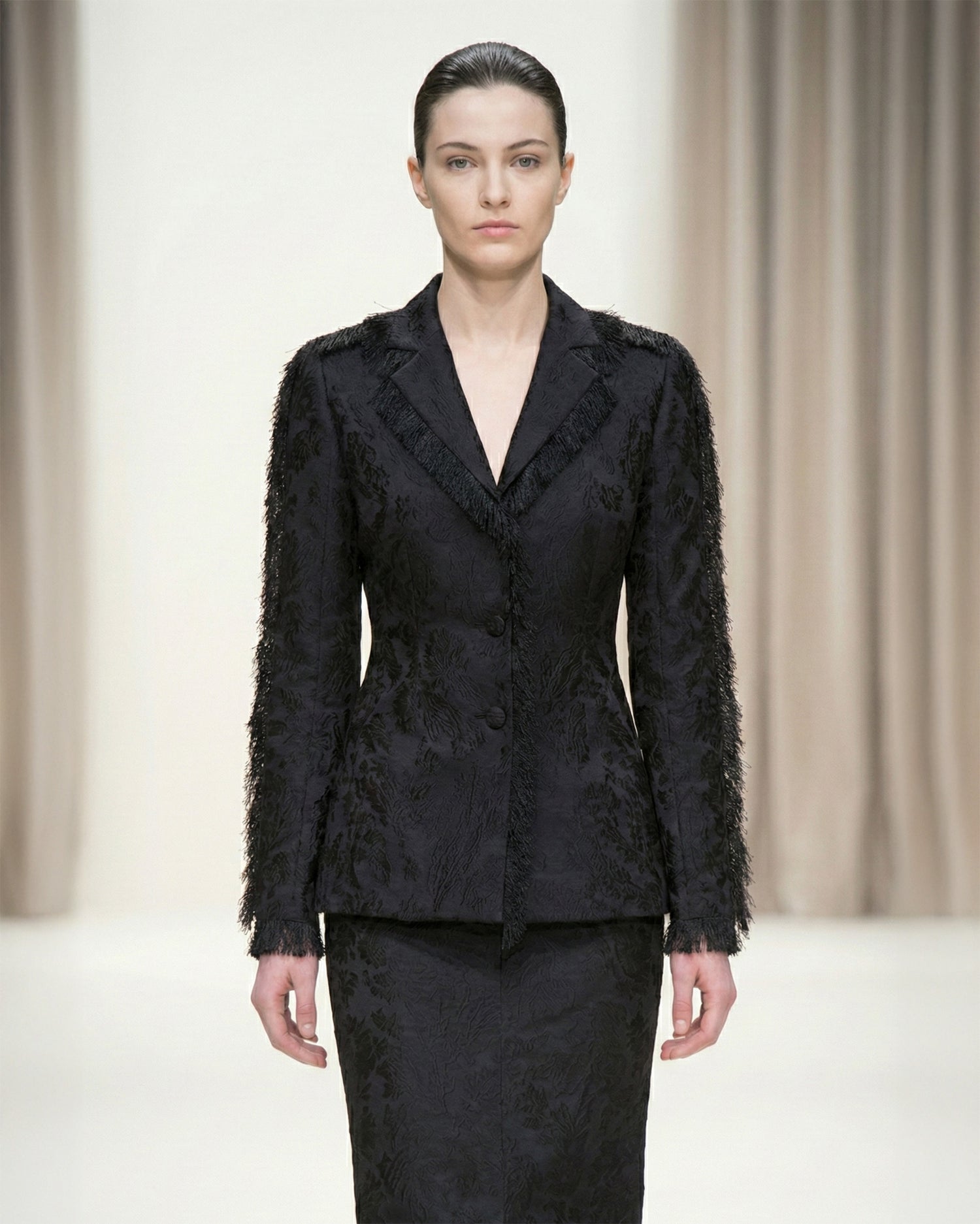 Classic silhouettes, presented in silk brocade.